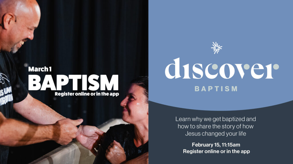 Considering getting baptized, but have some questions? Not sure how to write your testimony or story of how Jesus has changed your life? Perhaps you were baptized as an infant and aren’t sure what it means as an adult. Join us for Discover Baptism. It’s a safe space to ask questions, get answers, and even learn how to write the story of your journey that you can easily share with others.